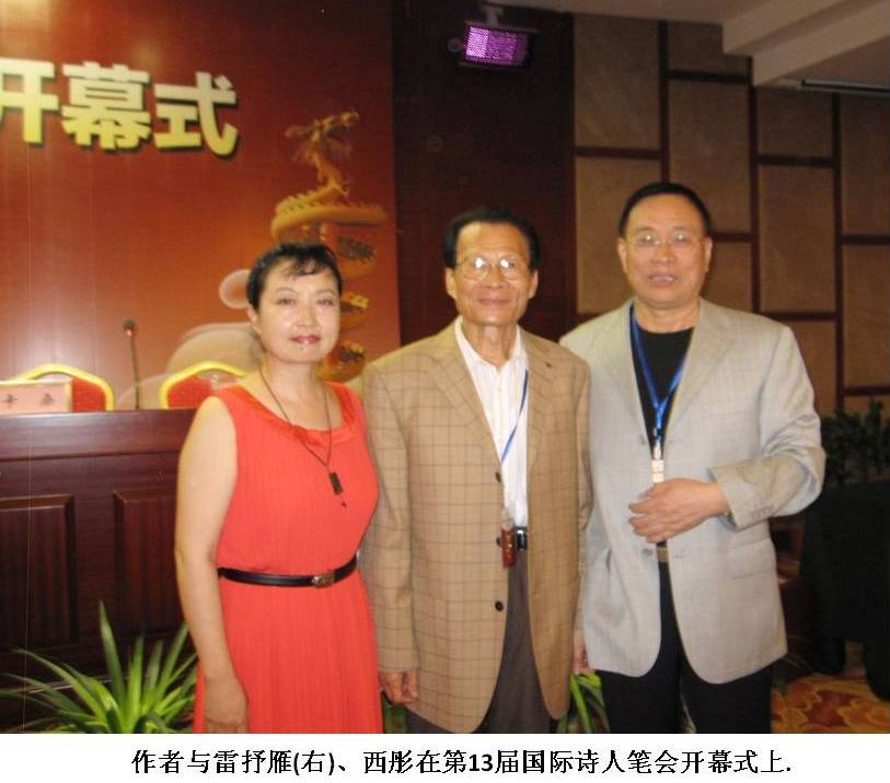 我不止一次地听人提到:雷抒雁老师对业余作者、包括儿童小作者的关心爱护和大力提携,是一贯的,没有功利之心的。这一点,是说起来容易做起来难——有些前辈非常爱惜自己的时间(这当然无可非议);另外,如今文坛上心照不宣的“红包评论”、“交换发稿”,乃至“荷尔蒙关怀”等等,使得文坛像商品市场一样,到处充斥着交易的气息,对他人的无私提携几成“奇迹”。在此届国际诗人笔会上,我曾就此话题与雷老师闲聊,其间提及他去年在重庆作协的内部刊物《银河系》上为傅天琳写的一个长篇评论,我阅后颇为感佩——这篇既没有稿费、又没有多少发行量的文章,竟写得如此情绪饱满又理性深邃,一看就是认真下了功夫的。这使得我对雷老师的为人又一次“刮目相看”……